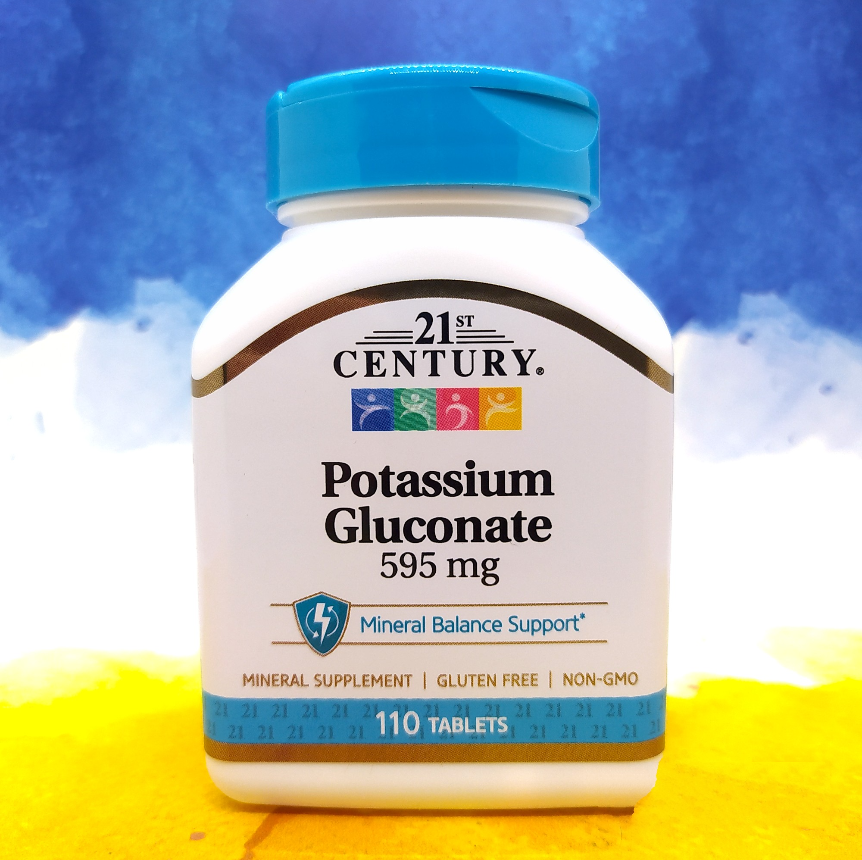Добавка 21st Century Potassium Gluconate 595 mg не затримує воду (має властивість легкої сечогінної дії), прискорює виведення шлаків та продуктів обміну речовин, активізує роботу фермеентів та артеріальний тиск. У зовнішньому вигляді, він покращує стан шкіри, нігтів та волосся. При цьому добавка не має неприємного присмаку та таблетки не великих розмірів, завдяки чому приймати Potassium Gluconate легко.