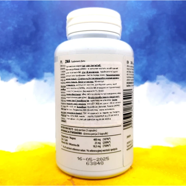 Одна з найкращих ЗМА на ринку спортивного харчування. Чому? Все просто – цинк і магній у добавці використовуються у високо засвоюваній хелатній формі! Activlab ZMA випускається у фасуванні 90 капсул і має шикарне дозування – магній 400 мг, цинку 15 мг, а також вітамін Б6!!!
