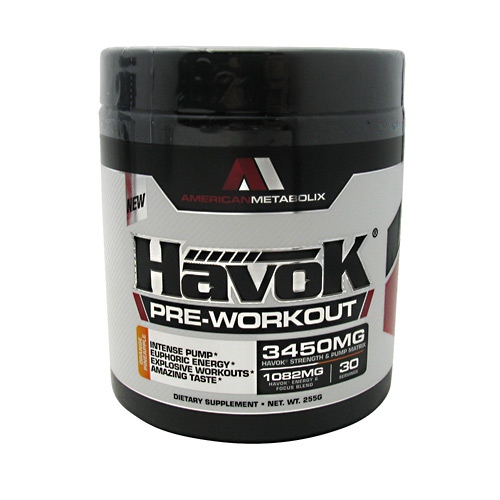 Пред тренировочный комплекс от американского производителя спортивного питания AmericanMetabolix. Пред тренировочный комплекс Havok - способствует увеличению силовых показателей, выносливости, и ментальной концентрации, что помогает сделать вашу тренировку намного более интенсивной, и продуктивнее. В наличии доступна фасовка - 345 грамм (30 порций), со вкусами арбуза, и лимонного пунша.