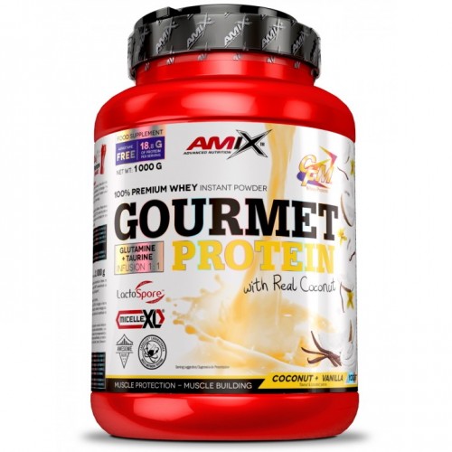 Кремоподібний протеїновий коктейль із чудовим смаком та справжніми шматочками фруктів. Запатентований ізолят сироваткового протеїну CFM® - це сучасний природний низькотемпературний процес, в результаті якого отримують високі рівні не денатурованого білка та продукт із чудовим смаком та оптимальними поживними якостями. Це ізолять сироватки однієї з найвищих якостей у світі завдяки своїй високій чистоті, чудовій аміногрупі та максимальній біодоступності з однією з найвищих існуючих біологічних цінностей. Amix Gourmet Protein містить додаткову кількість важливої амінокислоти L-глутаміну для покращення синтезу та відновлення білка, таурину та LactoSpore. Даний препарат допоможе Вам краще відновити м'язи після інтенсивних тренувань, а також створить сприятливе середовище для збільшення м'язової маси, і все це при одночасному насолоді смачним вершковим коктейлем з низьким вмістом жиру та цукру, як ніколи раніше.