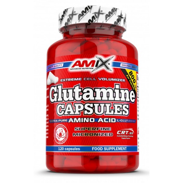 Глютамін у капсулах по 800 мг британського виробництва. Amix L- Glutamine Capsules 800 мг добре розчиняється та має нейтральний смак.