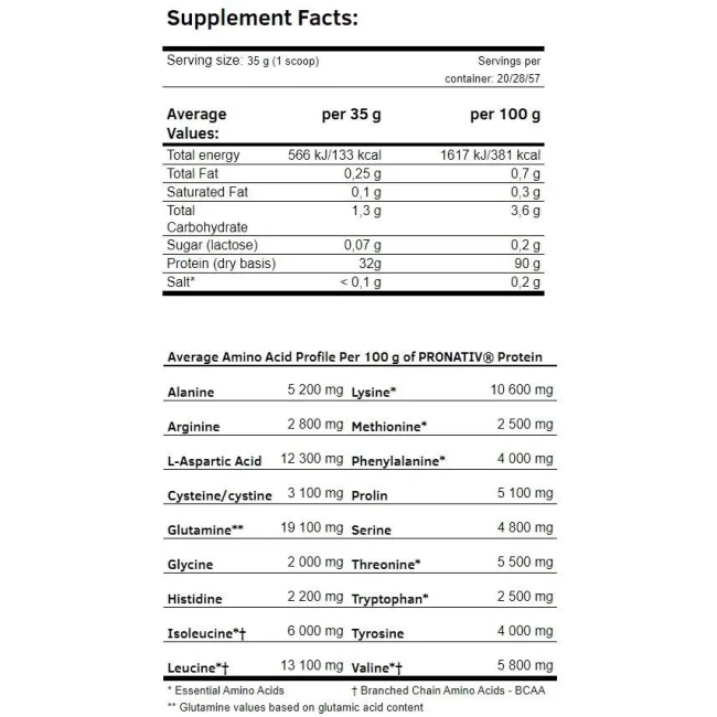 | Джерело білка | Ізолят сироваткового білка Pronativ® (з молока) |