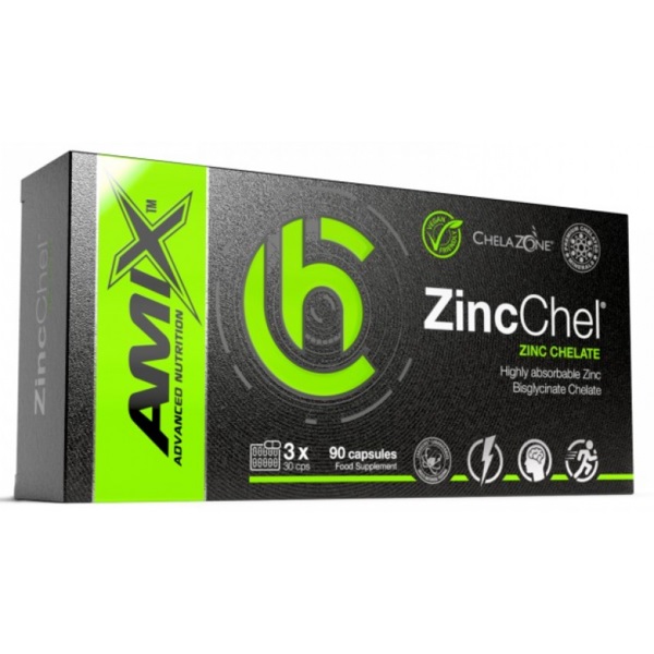 Роль цинку в організмі часто недооцінюється, хоча при його дефіциті неможливий нормальний синтез гормонів, страждає на репродуктивну функцію, а також порушується безліч інших органічних процесів. Цинк необхідний для правильного зростання та регенерації тканин, а також відповідає за правильне функціонування імунної системи. Amix ZincChel Zinc Bisglycinate Chelate містить найкращу, легкозасвоювану форму цинку, хелату бісгліцинату та цинку ChelaZone.