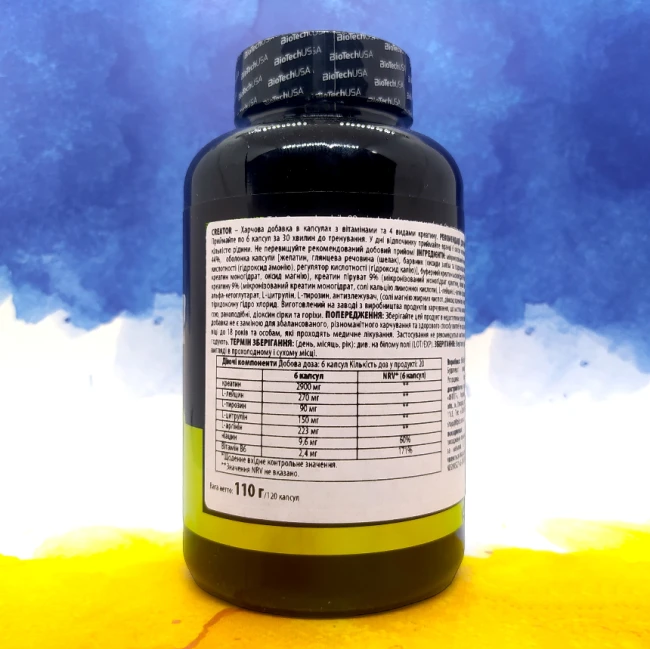 Препарат biotech креатин креатор є багатокомпонентною амінокислотою, що необхідна організму для нормального зростання м'язів та збільшення продуктивності та витривалості.