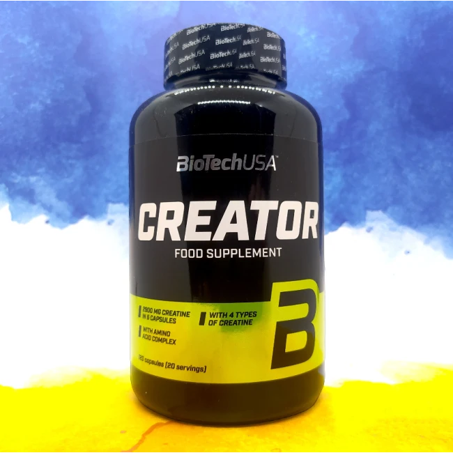 До Вашої уваги не звичайний креатин, а ціла креатинова бомба з амінокислотами та кофеїном, відмінний варіант для прийому перед тренуванням для збільшення енергії, сил та мотивації для тренування. BioTech USA Creator містить 5 типів креатину і випускають їх у фасуванні 120 капсул.