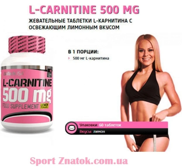 Спортивна добавка Л карнітин, з вмістом 500 мг на капсулу, призначений для збільшення енергії на тренуваннях та спалювання підшкірного жирового прошарку. Випускається BioTech L-Carnitine 500 mg популярним американським виробником спортивного харчування, компанією BioTech із заводом в Угорщині, фасуванням 60 таблеток.