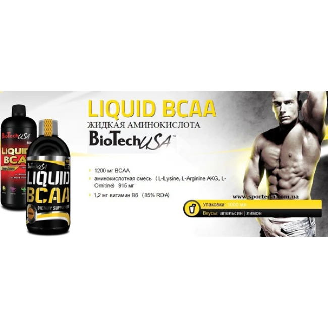 Liquid BCAA – рідкі амінокислоти BCAA, випущені на угорському заводі Biotech. Рідка форма бцаа випускається ліченими виробниками спортивного харчування, і ставить під сумнів ефективність цієї форми амінокислот. Загалом, амінокислоти БЦАА – одна з найкращих та дієвих добавок на ринку спортивного харчування. Відмінно відновлюють (зменшують крепатуру), збільшують синтез білка, зберігають м'язи від розпаду під час сушіння та мають ще багато інших позитивних властивостей, які опишемо нижче.