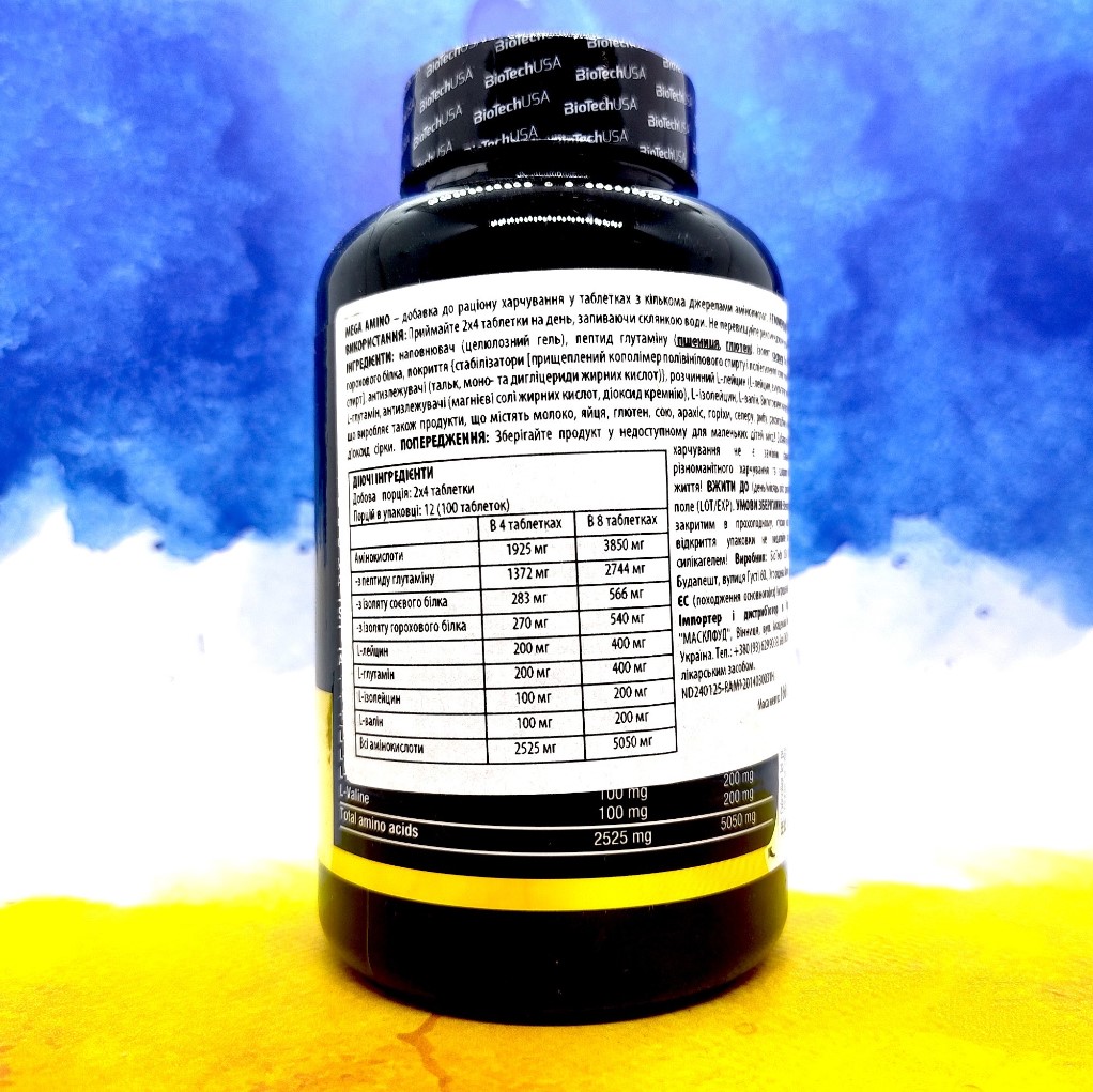 Загальний комплекс амінокислот, що містить чудово збалансовану амінокислотну матрицю Amino 3200 - це добавка від легендарного виробника спортивних харчових добавок компанії Biotech, призначений для насичення організму амінокислотами, в результаті чого у Вас значно скоротиться час відновлення, і підвищаться результати на тренуванні. Також, повний комплекс амінокислот mega amino 3200 дуже корисний для здоров'я не тільки спортсменів, а й взагалі всіх людей, оскільки людські клітини оновлюються саме за рахунок амінокислот та води.