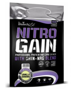 Практично будь-який гейнер складається з вуглеводів, які є відмінним стимулятором при зайнятті силовими тренуваннями, і білка, який є незамінним інгредієнтом у будові м'язової структури (м'язи практично повністю складаються з білка). Nitro Gain від угорського виробника BioTech USA є добрим джерелом вуглеводів (99 г на порцію), так і амінокислот (близько 30 грам на порцію). Крім цього даний продукт має і комплекс вітамінів і травні ферменти, які допоможуть підтримати метаболічні та травні процеси.
