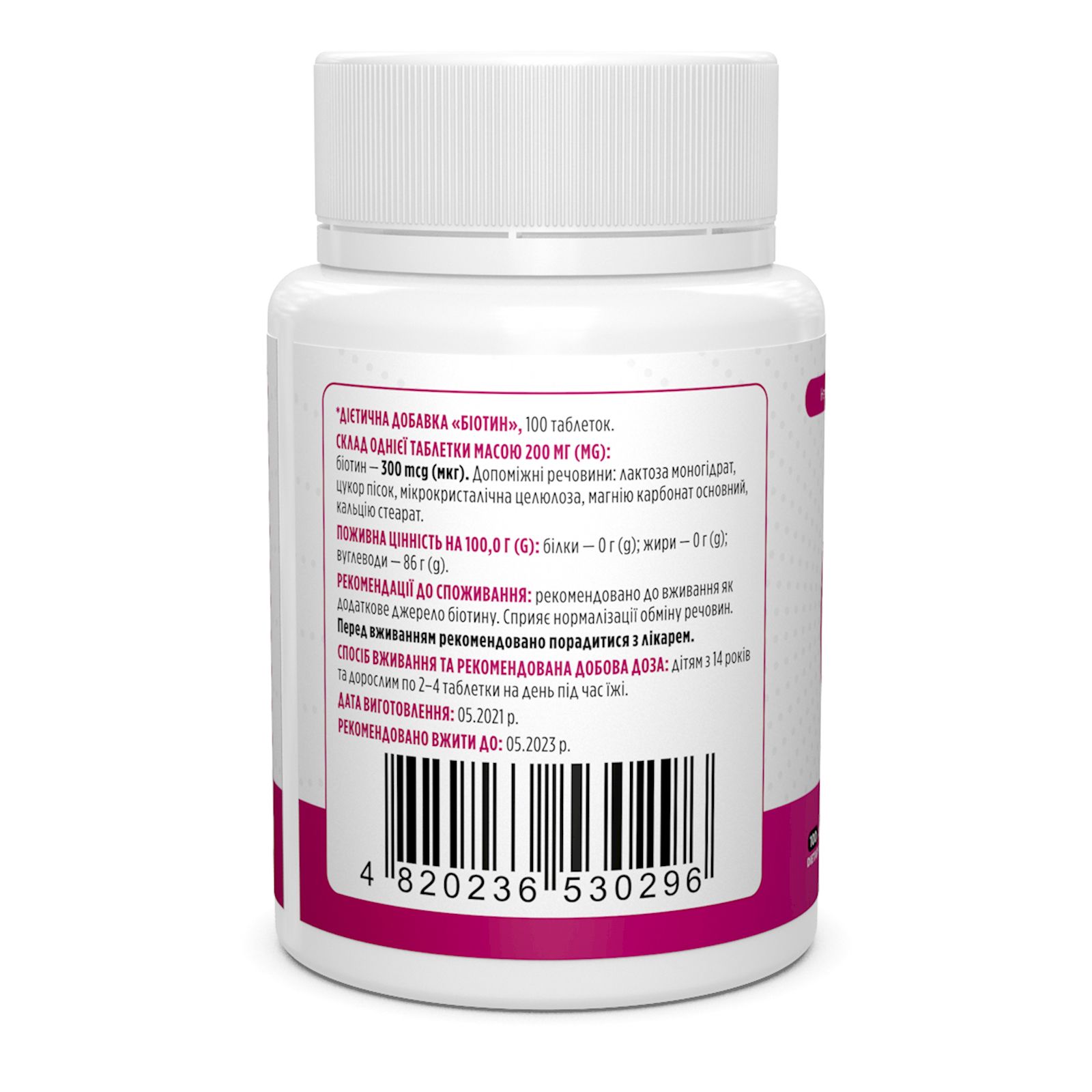 Biotin, Biotus, 300 мкг, 30 таблеток – це продукт, розроблений для тих, хто піклується про свій зовнішній вигляд та здоров'я