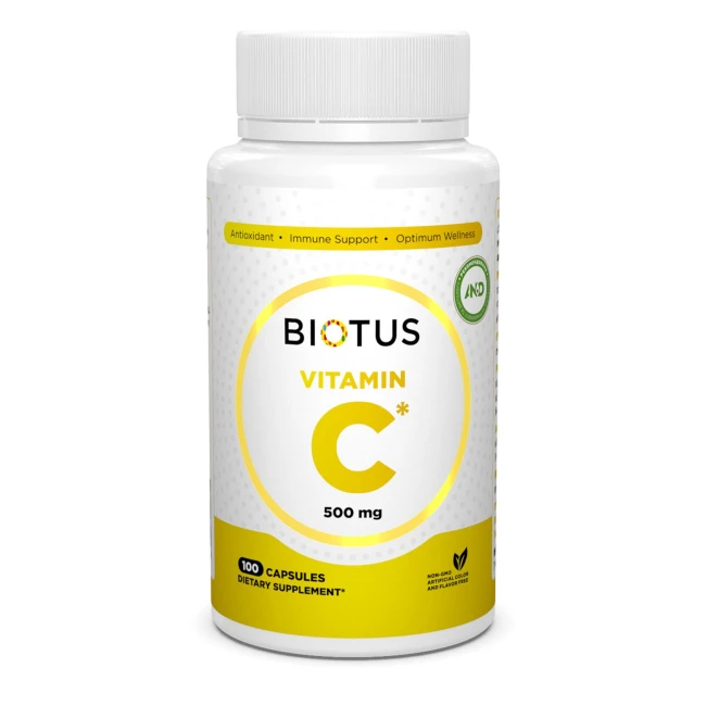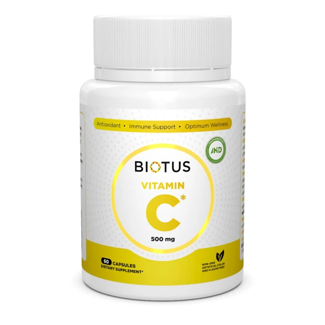 Основні переваги: Vitamin C, Biotus, 500 мг, 60 капсул Vitamin C від Biotus – це харчова добавка з аскорбіновою кислотою, посилена екстрактом плодів шипшини, для комплексної підтримки здоров'я