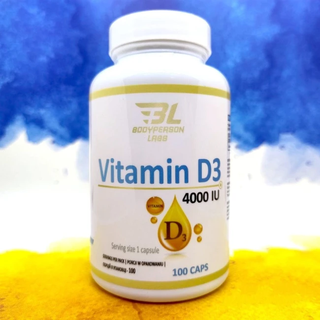 Вітамін D3 у високій дозі від польського виробника Bodyperson Labs. Незамінний вітамін йде у формі холекальциферолу (білий кристалічний порошок). Bodyperson Labs Vitamin D3 4000 IU у фасуванні 100 капсул.