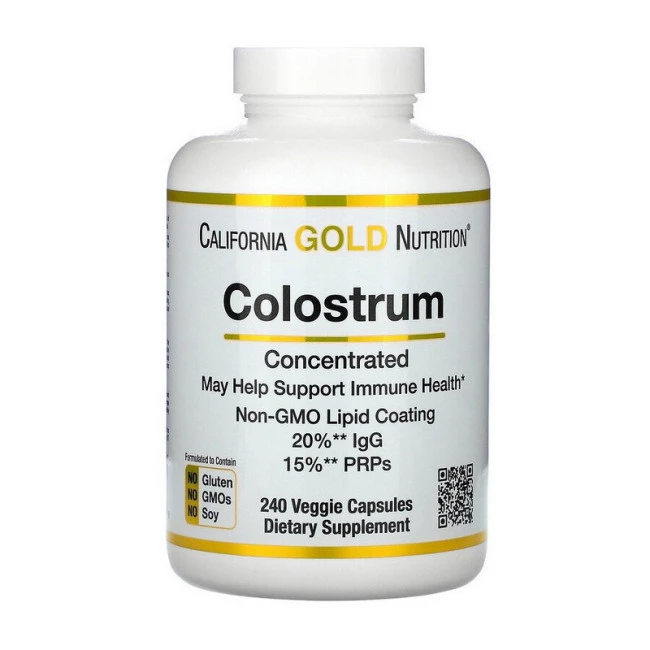 Молозиво в капсулах найвищої якості, з великою кількістю імуноглобулінових поліпептидів для підвищення імунітету та здоров'я. California Gold Nutrition Colostrum не містить ГМО, rBST та антибіотиків та має GMP стандарт якості.