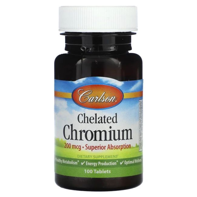 Хром у хелатній формі, для максимального засвоєння та користі для Вашої дієти та здоров'я. Carlson Labs Chelated Chromium 200 mcg має високу якість і відмінно підходить для зниження апетиту, зниження холестерину та покращення травлення. Випускається в США в упаковках на 100 та 300 таблеток.
