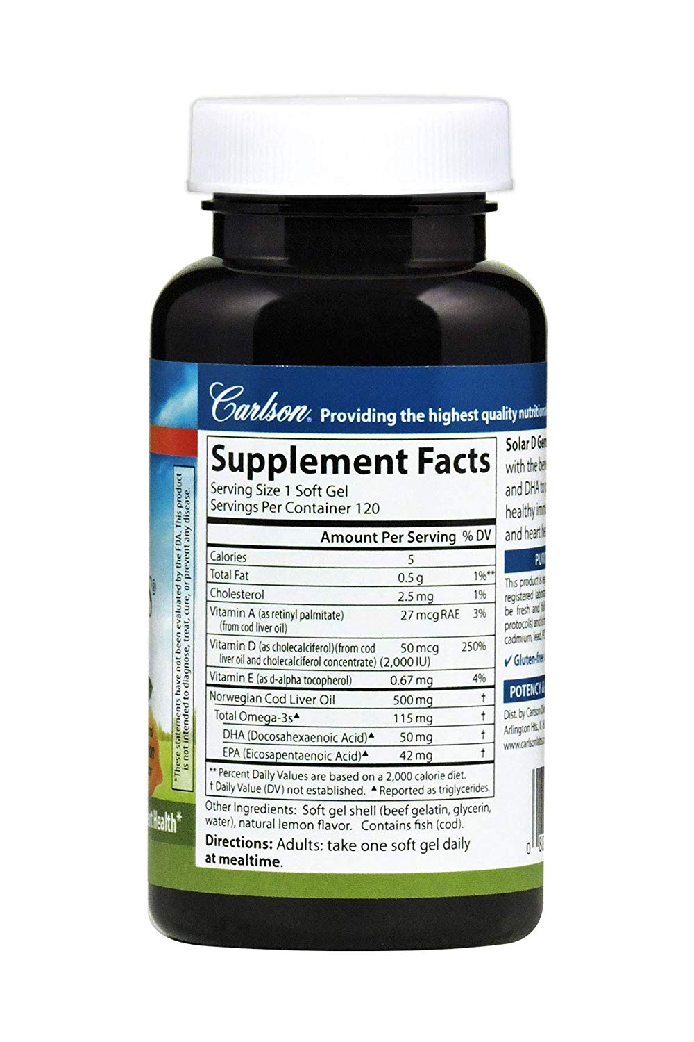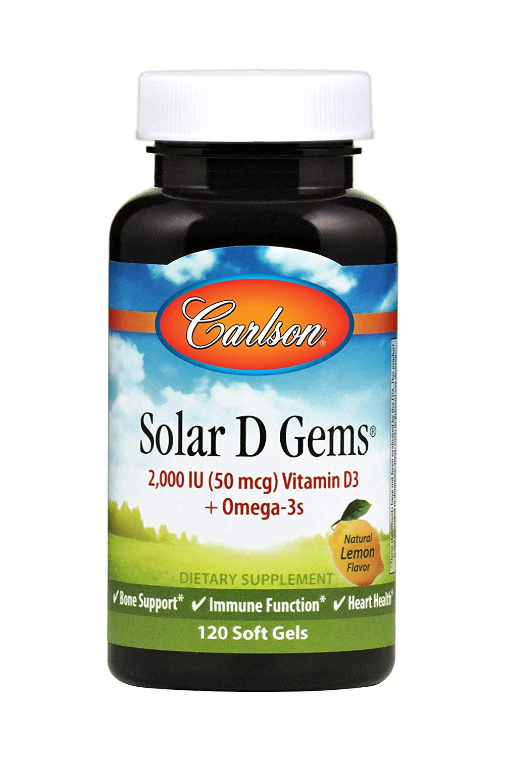Carlson Labs Solar D Gems Natural Lemon Flavor 2000 IU