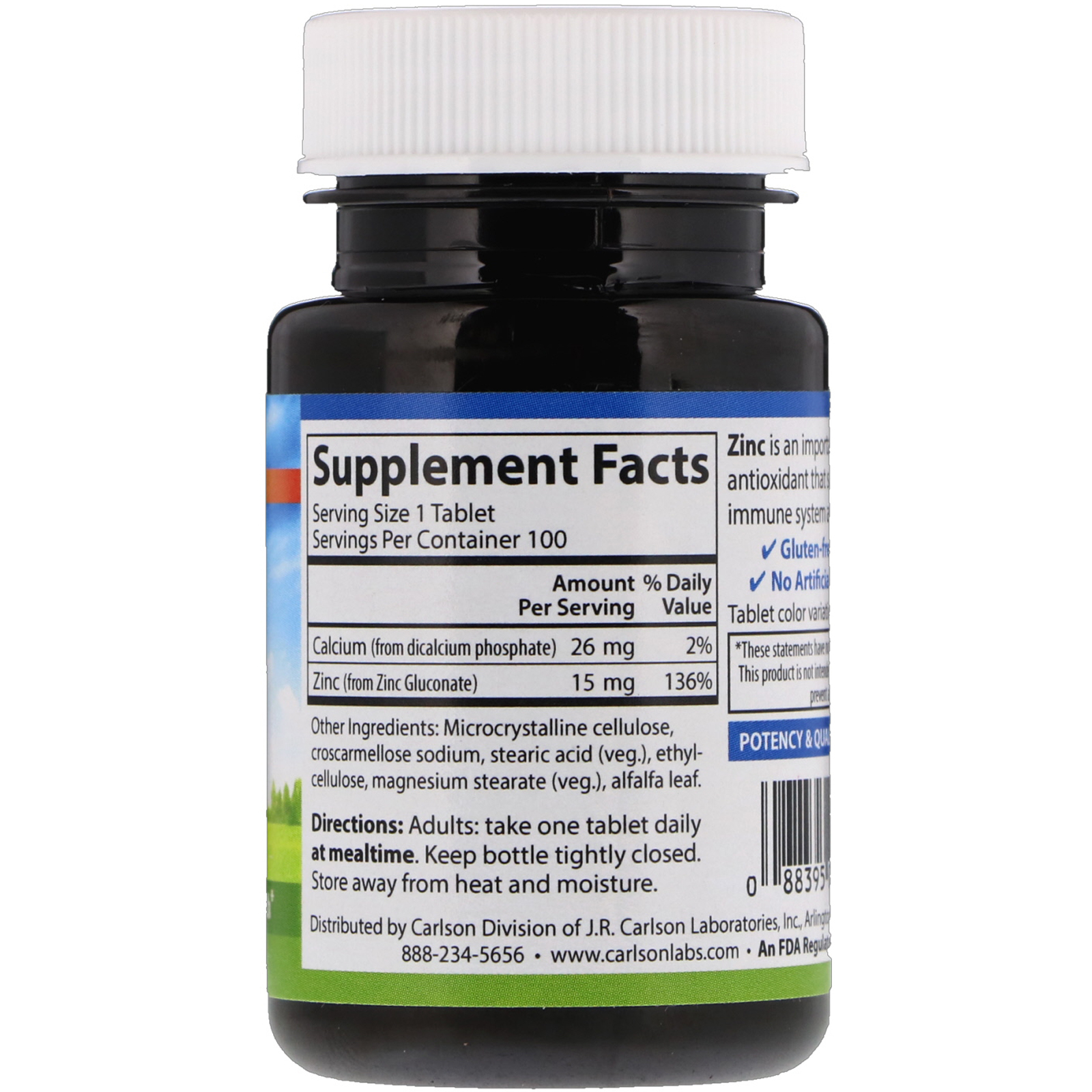 Основні переваги: Zinc, Carlson, 15 мг, 250 таблеток