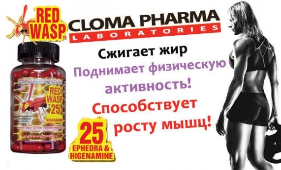 Red Wasp (Червона Оса) - це новинка серед жироспалювачів, яку в 2015 році випустив виробник, який спеціалізується виключно на виробництві добавок, що допомагають знижувати спортсменам рівень підшкірного жиру - Cloma Pharma. Добавка є дуже сильним енергетиком, піднімає температуру тіла для кращого жироспалювання, пригнічує апетит, покращує метаболізм і сприяє знищенню підшкірного жиру. Зрозуміло, все це відбувається тільки з Вашою допомогою, тому що без фізичних вправ всі жироспалювачі не ефективні!