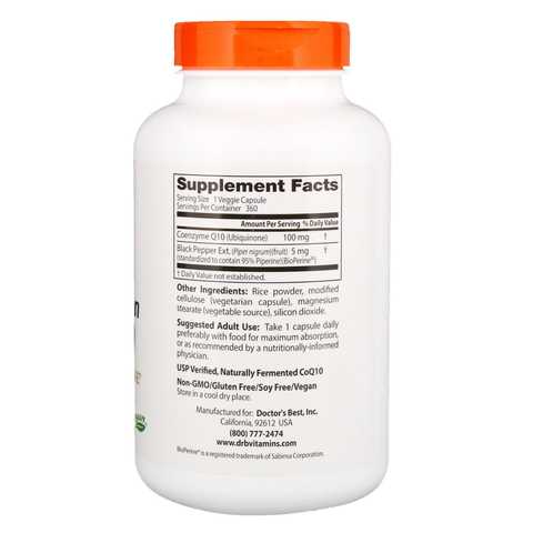 Высокоусваиваемый коэнзим Q10 в дозировке 100 мг, с добавлением биоперина для максимального эффекта. Doctor's BEST High Absorption CoQ10 100 mg with BioPerine выпускается в фасовках 60 и 120 капсул, предназначен для укрепления сердца, и улучшения производства энергии (не относиться к стимуляторам, или энергетикам).