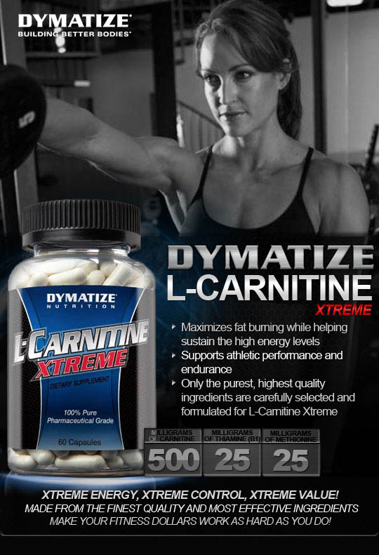 Спортивная, пищевая добавка L Carnitine Xtreme - это карнитин американского производства, c добавлением тиамина и метионина в состав, от широко известной американской компании Dymatize Nutrition. Данный продукт - это на самом деле отличная добавка, однако, его цена совершенно не соответствует своей низкой дозировке, то есть принимать для похудения диматайз л карнитин нужно, около 4-х капсул, что не целесообразно, учитывая, что многие аналоги уже вкладываются в 2 капсулы или таблетки. Выпускается в фасовке - 60 капсул.