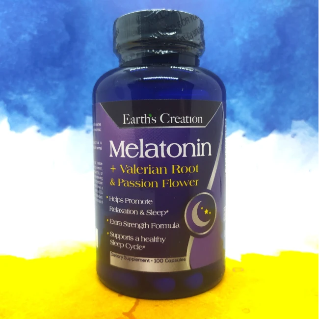 Комплекс Earths Creation Melatonin + Valerian Root & Passion Flower, спрямований покращити якість сну та допомогти відновитися під час нічного відпочинку.