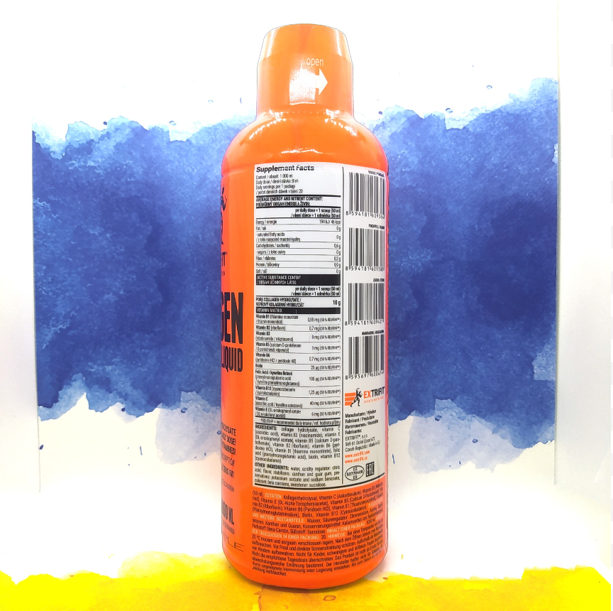 Добавка для покращення стану волосся, нігтів, шкіри та сполучних тканин від чеського бренду спортивного харчування. Collagen Extrifit Liquid підходить як для спортсменів, так і тих, хто просто бажає привітатися і виглядати краще. Випускається Екстрифіт колаген у рідкому вигляді, у фасуванні 1 літр, у смаках: вишня, апельсин, ананас та малина з додаванням вітамінів групи Б, а також вітамінів С та Е.