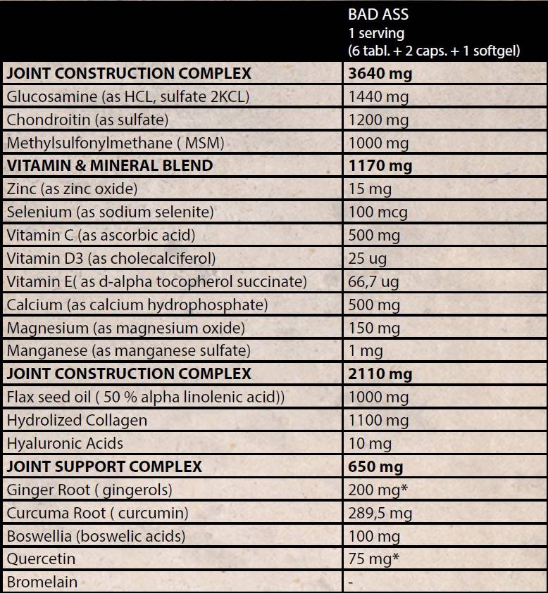 Комплексний хондропротектор від виробника спортивного харчування родом із Польщі. Так, все, що ми бачимо у FA Bad Ass Flex - абсолютну аналогію від, мабуть, найвідомішого американського побратима Universal Animal Flex, який у свою чергу завоював шалену, але цілком оправдану популярність. Американця прийнято вважати одним із найкращих хондропротекторів (як харчову добавку), серед дуже багатьох аналогів. Що ж, подивимося наскільки гарний поляк, адже виробник не соромиться порівнювати його з американською легендою.