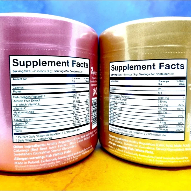 | Collagen (колаген) | 6500 мг (риб'ячий колаген пептан F) |