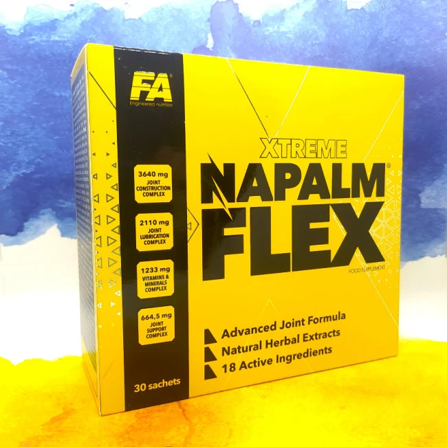 Потужна добавка, яка містить 18 ігридієнтів у великій дозуванні для підтримки здоров'я суглобів. Fitness Authority Napalm Flex містить 30 пакетиків, кожен з яких по 6 таблеток і 3 капсули, що дає найвищий ефект у лікуванні та профілактиці суглобів.