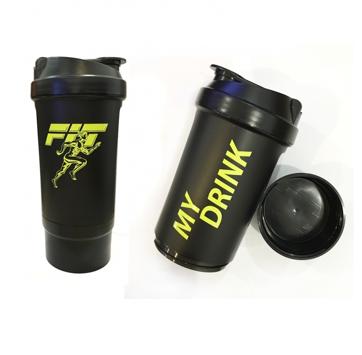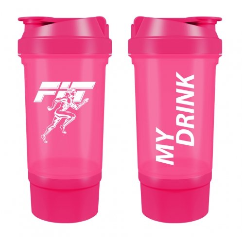 Шейкер в рабочём объеме 500 мл с дополнительным контейнером от Fit. Серия шейкеров MY Drink привликательна из-за своего качества, разнообразия цветов и относительной недорогой цены. Шейкер имеет сеточку для взбития коктейлей, что сделает его без комочков за предельно быстрый срок. Выпускается в таких цветах: дымчато-чёрном с разным цветом надписей My Drink и логотипом, в салатовом цвете, розовом и белом.