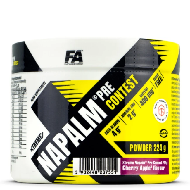Комплекс для прийому перед тренуванням, який збільшує не тільки енергію, а ще й витривалість і пампінг. Fitness Authority Napalm Pre-Contest містить у собі кофеїн, аргінін, бета-аланін, цитрулін, таурин та вітаміни. Добавка призначена не тільки для профі, а й для тих, хто вивести тренування та м'язи на новий рівень.