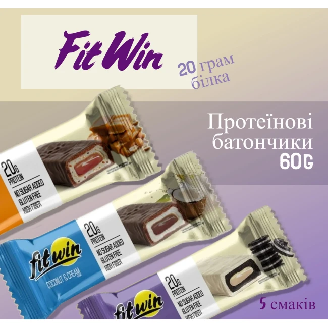 Ніжна начинка та приємна шоколадна глазур батончика подарують задоволення під час перекушування та наситять корисним білком. Структура батончиків дуже м'яка (жодна пломба не постраждає). FitWin Protein Bar вважається якісним та корисним задоволенням. FitWin 20g на довго забезпечує енергією, втамовує голод і просто смачний.