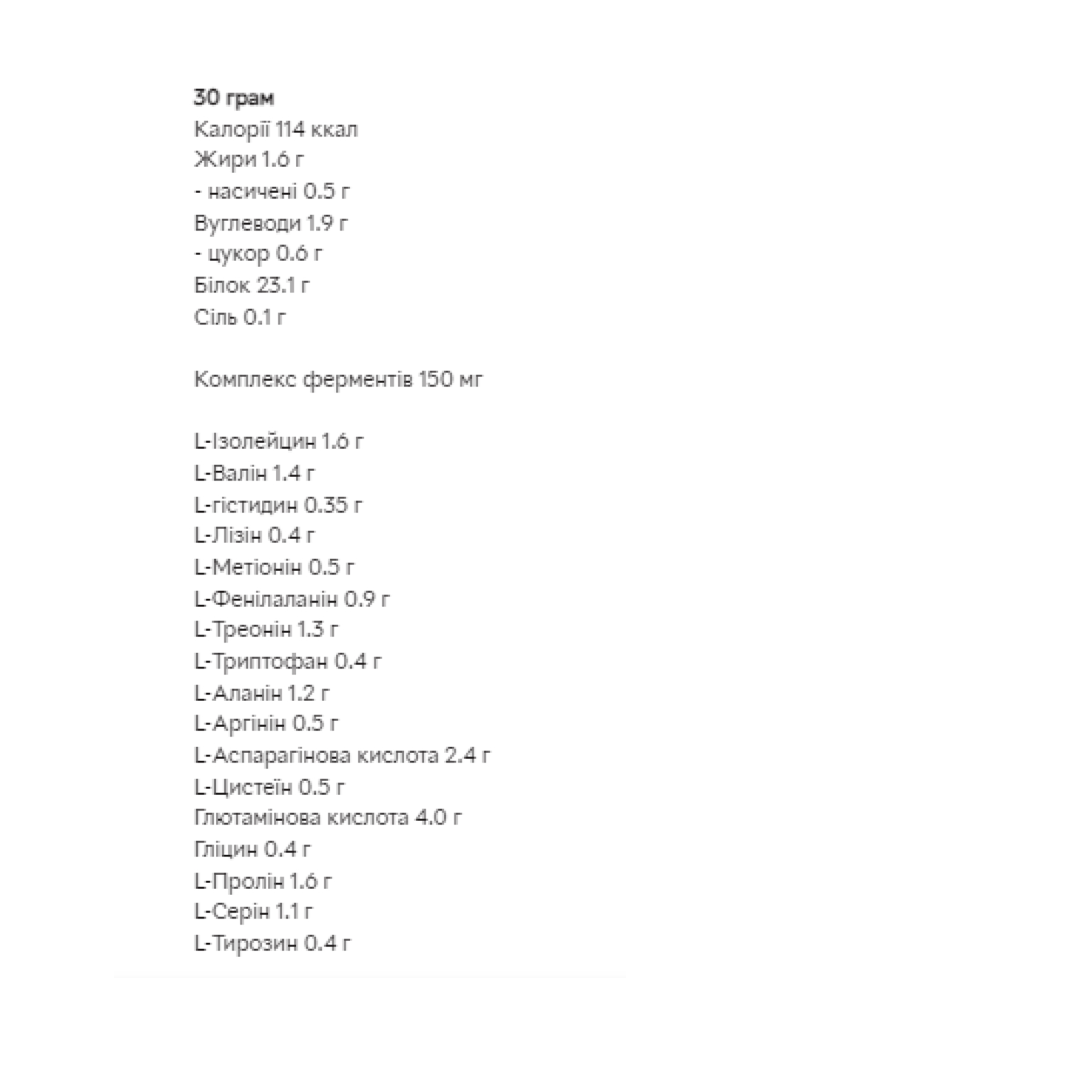 Високий вміст білка (77%): сприяє ефективному нарощуванню та відновленню м'язової тканини.