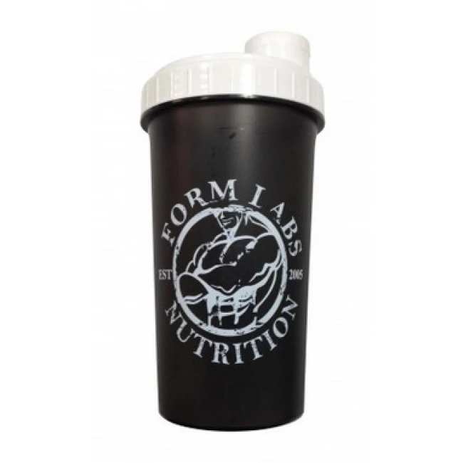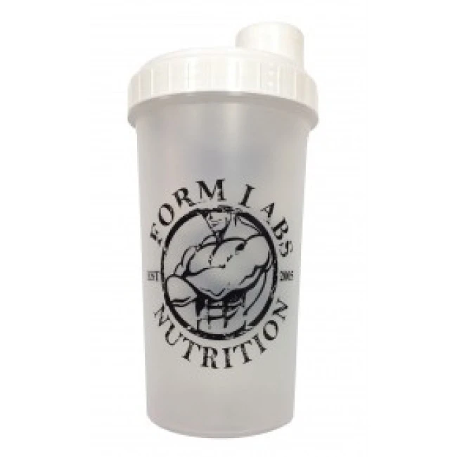 Стильний та симпатичний шейкер з написом Form Labs Nutrition та м'язистим атлетом на колбі. Виготовляється у двох кольорах: прозорий з білою кришкою, і чорний із тією ж кришкою. Призначений спортивний шейкер для змішування сухих протеїнових сумішей, гейнерів і амінокислот з метою приготування смачних і корисних коктейлів, які давно вже стали невід'ємною частиною життя будь-якого спортсмена.
