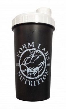 Стильный и симпатичный шейкер с надписью Form Labs Nutrition и мускулистым атлетом на колбе. Производится в двух цветах: прозрачный с белой крышкой, и чёрный с этой же крышкой. Предназначен спортивный шейкер для смешивания сухих протеиновых смесей, гейнеров, и аминокислот, с целью приготовления вкусных и полезных коктейлей, давно уже ставших неотъемлемой частью жизни любого спортсмена.