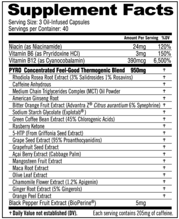 Универсальный жиросжигатель американского производства, для похудения, с термогенным эффектом (вывод лишней жидкости), а также уникальной формулой Pyro для повышения настроения во время диет и похудения. GAT JetFuel Pyro выпускается в бытылочке на 120 капсул, также повышает Вашу энергию для того чтобы поднять Вашу бытовую активность и выносливость на тренировках.