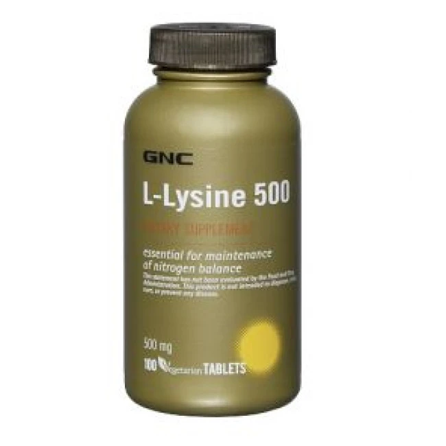 Амінокислота від американського виробника спортивного харчування GNC L-Lysine 500 є незамінною амінокислотою, яка призначається для підтримки обміну азоту, а також зміцнення та відновлення м'язової тканини. Добавка опосередковано впливає зміцнення кісток, з допомогою абсорбції з кишечника кальцію. Від цього виробника випускається аналог продукту з більшим дозуванням. L-Lysine 1000. Доступне фасування: 100 капсул.
