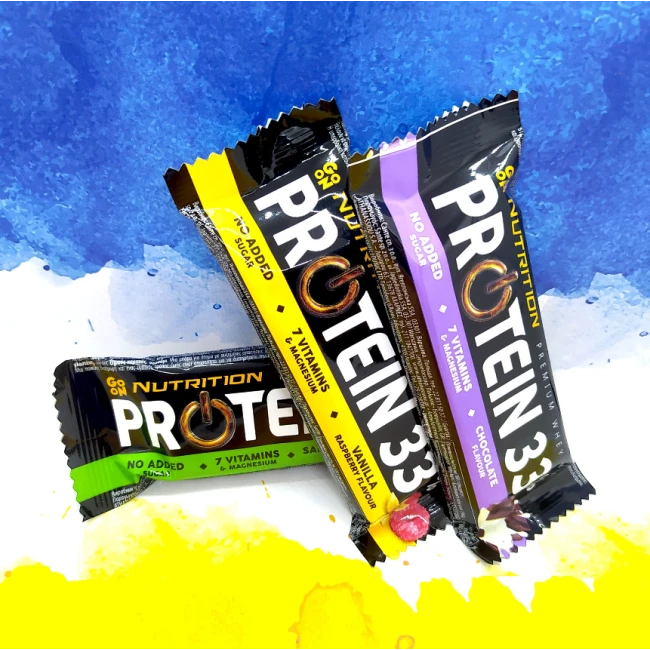 Протеїнові батончики Go On Protein 33 містять білки сироваткового типу, призначені для швидкої доставки в організм білкових сполук з вуглеводами. Батончик протеїн 33 користується великою популярністю не тільки серед шанувальників фітнесу, а й тих, хто хоче швидко організувати якісний перекус. Якщо ви ще не вирішили, де варто купити батончик protein 33 без цукру в Україні, рекомендуємо зробити це в магазині Здоров'як.