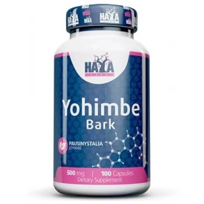 Екстракт з кореня йохомбі у вигляді порошку в капсулах. Добавка Haya Labs Yohimbe Bark 500 mg піднімає рівень лібідо, підвищує сексуальний потяг, сприяє фізичним та розумовим здібностям, а також позитивно впливає на зменшення жирових відкладень.