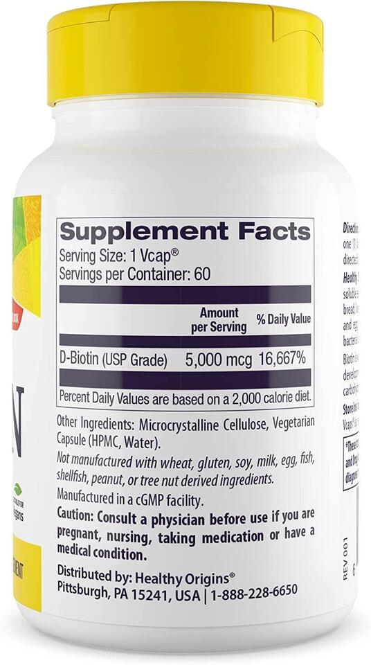 Біотин, 5000 мкг, Healthy Origins, Biotin, High Potency, 5,000 mcg Біотин, Biotin від Healthy Origins - це вітамін, який іноді називають вітаміном Н або В7