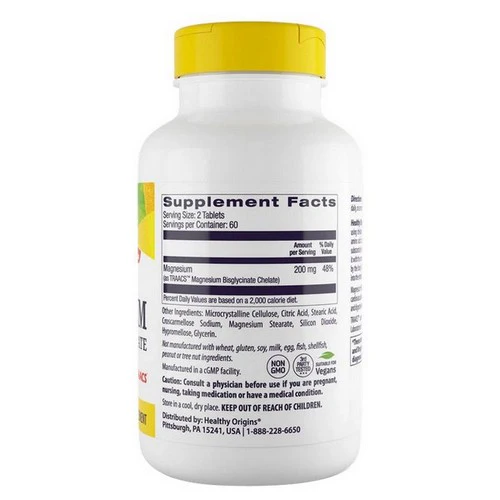 Магній бісгліцинат хелат, Magnesium Bisglycinate Chelate, Healthy Origins - висока біодоступність форма магнію з низькою молекулярною вагою, корисна для здоров'я серцево-судинної, нервової, респіраторної, травної системи, жіночого здоров'я
