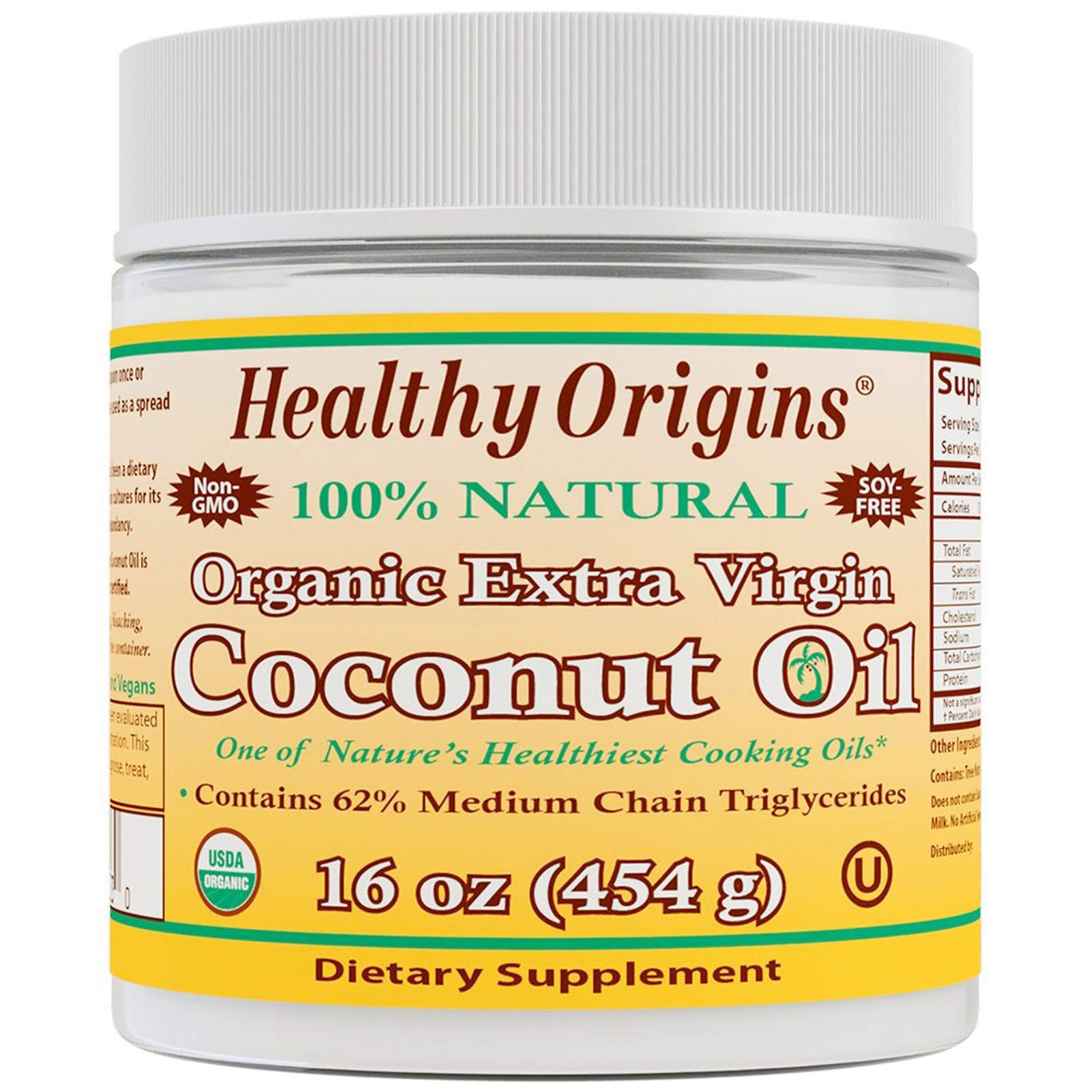 Органічна кокосова олія, Healthy Origins, Organic Extra Virgin Coconut Oil Органічна чиста кокосова олія містить насичені жири, середні жирні кислоти і тригліцериди