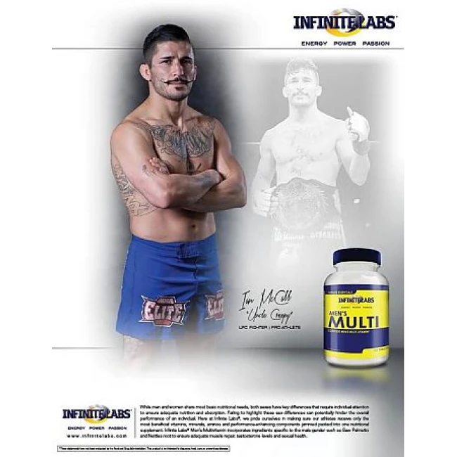 Men’s Multivitamin — комплекс вітамінів і мінералів, розроблений спеціально для чоловіків, з додаванням різних екстрактів, трав та антиоксидантів. Комплекс вироблений на американському заводі спортивного харчування Infinite Labs, і якщо не брати до уваги відсутність комплексу ферментів, то цей комплекс є гідною альтернативою Opti-Men.