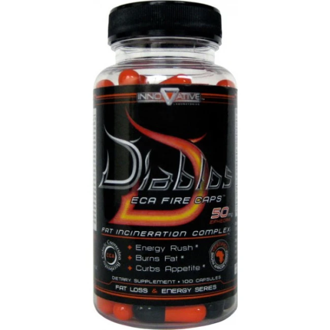 Ще один жироспалювач під назвою Diablos від американського виробника Innovative. Цього разу в основі стоїть склад ЕКА (ефедра, кофеїн, аспірин). Можна стверджувати, що ухил цього комплексу розрахований на інтенсивність тренування. Додатково має термогенні властивості, збільшує витривалість, концентрацію та силові показники. Доступна фасування 100 капсул.