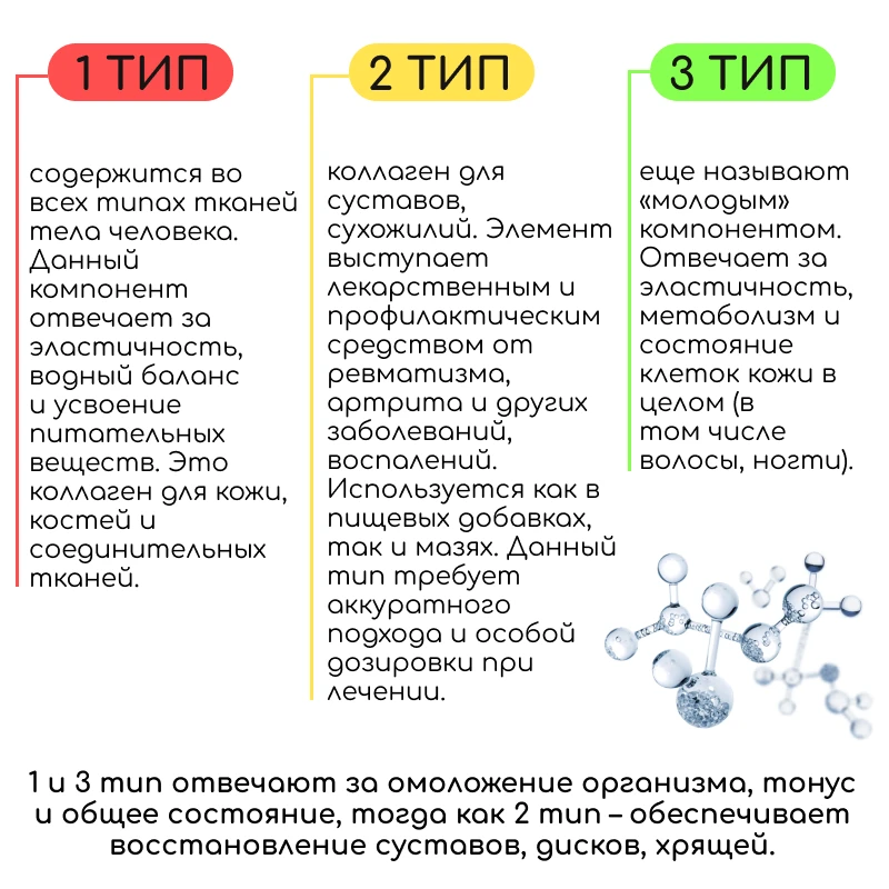 Перше, і найголовніше, що потрібно знати, щоб підібрати правильно колаген, це те, що колаген ділиться на три типи: