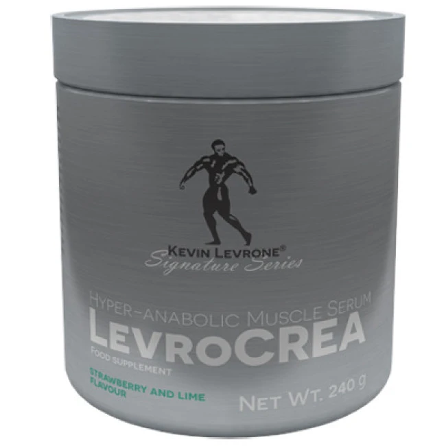 Багатокомпонентний креатин (креатин гідрохлорид, моногідрат, малат, нітрат) від американського виробника спортивного харчування Kevin Levrone. Levro CREA призначений для збільшення силових показників, витривалості, супроводжує набор м'язової маси. За фактом буде діяти швидше і ефективніше на відміну від звичайного моногідрату, за рахунок креатину гідрохлориду, який швидше і краще засвоюється. Доступне фасування 240 грам. Смак полуниці-лайм.