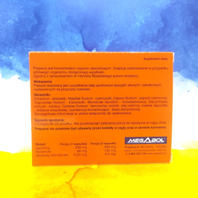 Популярный на современном рынке спортивного питания Польский производитель товаров для спортсменов, компания Megabol готова представить вашему вниманию инновационную разработку в области повышения уровня тестостерона, пищевую добавку Megabol Biosterol, состав которой содержит исключительно натуральные ингридиенты. Препарат Megabol Biosterol - это комплекс диетических про гормонов, содержащий в своем составе стероидные сапонины, целью которых является стимуляция организма к производству тестостерона, и максимизация умственной активности, что делает добавку полезной не только для спорта, но и для учебы. По сути добавка является натуральными стероидами, которые в свою очередь представляют собой соединения растительного происхождения, состоящие из двух частей: агликон - сапогенины (сапогенол) и гликону - сахарид. Основное действие, которое сапонины оказывают на организм заключается в перестройке мембран клеток, читай эпителия, в следствие чего он становится более проницаемым для органических и био активных компонентов при употреблении белка. Так же не следует забывать, что сапонины способны присоединятся к холестерину (из которого кстати организм и производит половые гормоны), образуя стабильные, и фармакологически активные соединения.