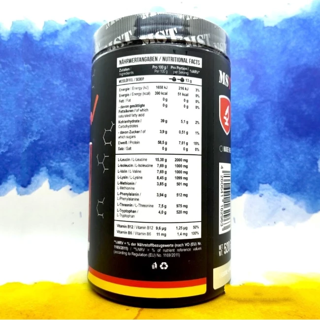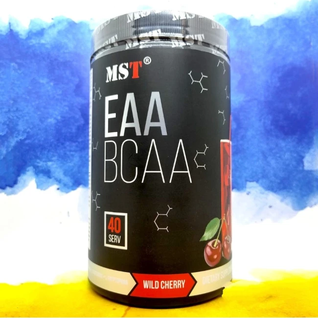 Комлпекс незаменимых аминокислот ВСАА и EAA в порошке, без добавления сахара и красителей. MST BCAA&EAA zero отлично восстанавливает мышцы после тренировки, и выпускатеся на немецком заводе, в фасовке 520 грамм, со вкусами колы, мохито и черники.
