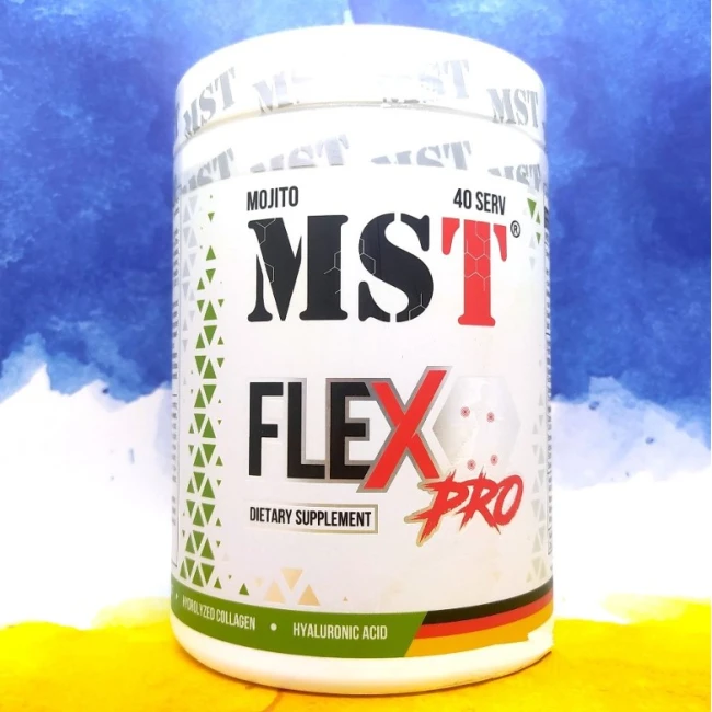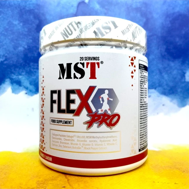 Високоякісний комплекс MST FleX Pro для здоров'я суглобів і зв'язок. Харчова добавка має посилений ефект і є відмінною підтримкою під час та після великих навантажень. Мультивітаміни з хондропротекторами разом швидше відновлюють після травм, знімають болі та добре зміцнюють суглоби для нових навантажень. MST FleX Pro створений як для спортсменів, так і для людей які страждають болями.