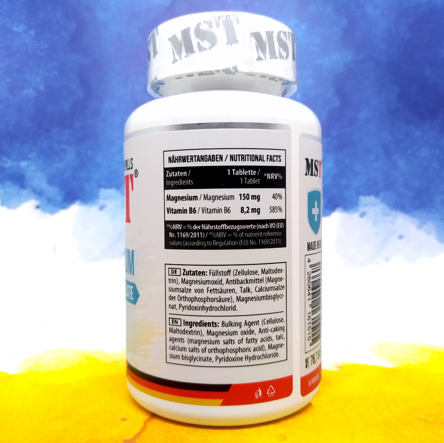 Хелатний магній для заспокоєння нервової системи та зміцнення сну. Також використовують MST Magnesium Chelate Vitamin B для зниження судом, а також зміцнення здоров'я. Випускається у фасуванні 100 таблеток, і відрізняється максимальним засвоєнням, без проблем із ШКТ.