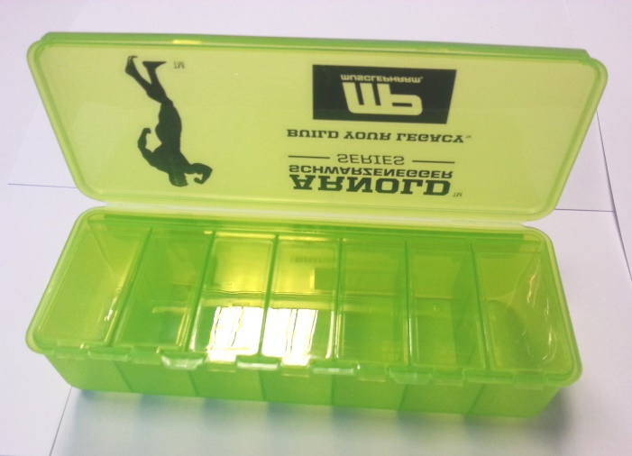Дуже зручна таблетниця на 7 днів для збереження таблеток і нагадування про прийом різних добавок. Ви раз на тиждень поповнюєте Arnold Pill Box, а далі щодня з окремого осередку дістаєте та приймаєте потрібні таблетки. Дуже зручний девайс для тих, хто пропускає важливі прийоми як спортивного харчування, так і різних ліків. Таблетниця зроблена з високоякісного харчового пластику і підійде будь-кому, адже має дуже стильний дизайн.